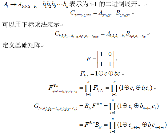 - G=kron(G,[1,0;1,1]);求F的n阶克罗内克内积
