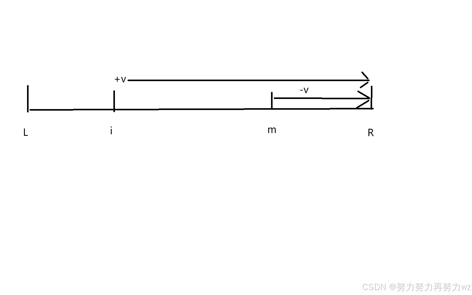 看到这里你想必肯定有两个疑问,第一问是想问我为什么要在i位置处加v,在m+1位置处要减去v?第二问则是为什么加工一遍前缀和就可以大概得到该利用下的叠加状态?
