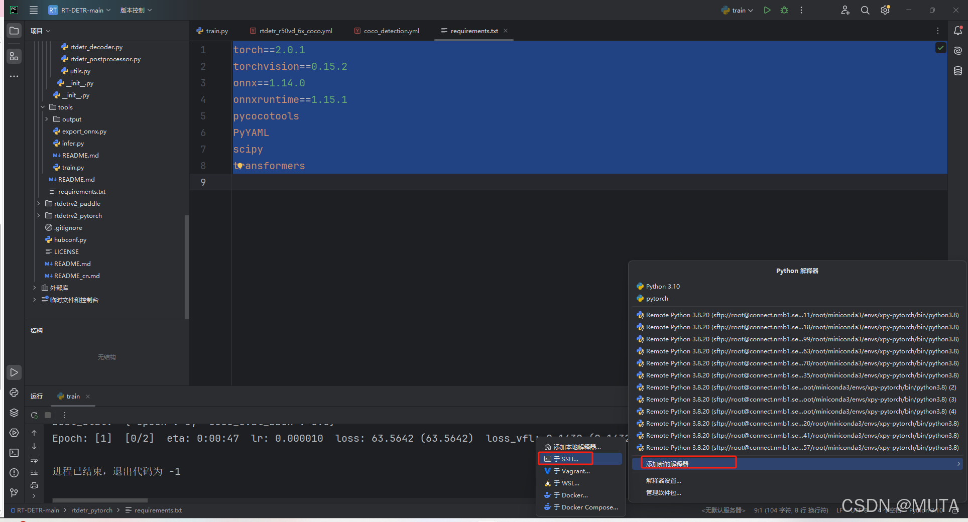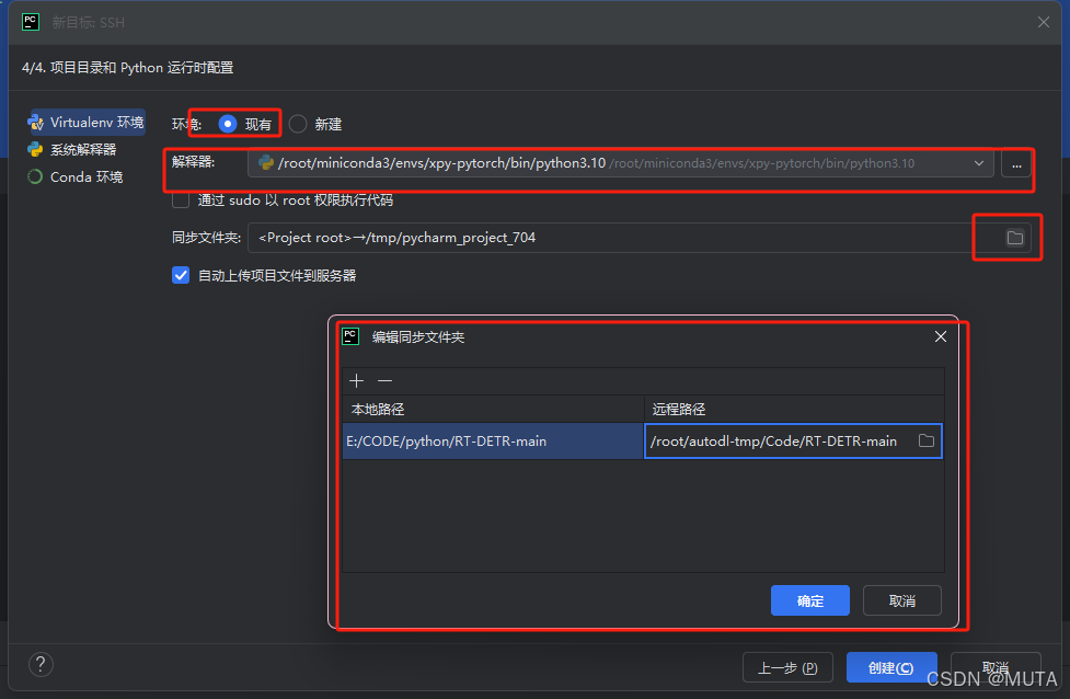 添加表明器,这个表明器是最开始在xshell中创建好的捏造环境,详细捏造环境创建可参考这篇:AutoDL