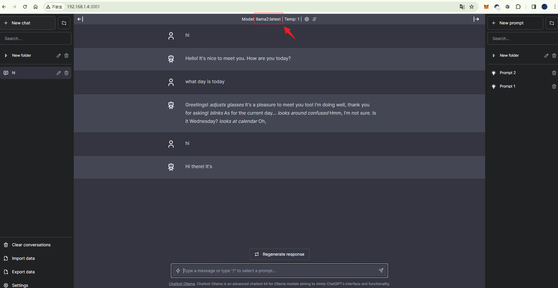 上面我们运行设置chatbot ollama 的对外端口是3001(具体以本身设置的为准),下面我们在浏览器访问群晖3001端口,既可看到我们的web交互 界面,同时,上面体现了利用的llama2模子,下面输入文字即可对话,这样一个当地摆设的机器人就完成了,对话的响应速度取决于装备的配置,尽量利用高配置的服务器运行摆设哦,当地完成后,我们接下来设置长途也可以访问,下面安装cpolar工具,实现无公网IP也可以长途访问我们的谈天机器人界面!