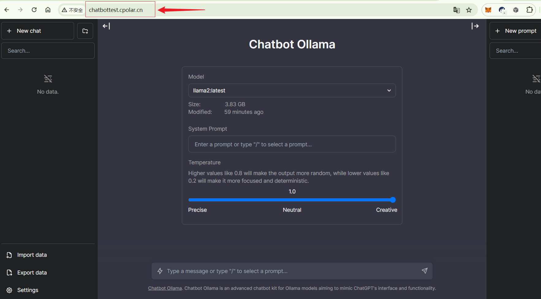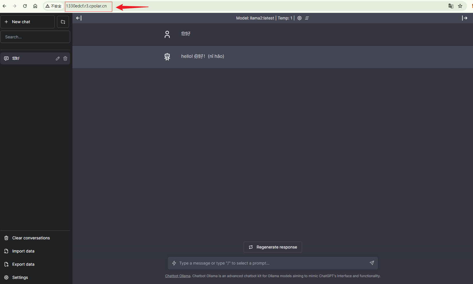 利用上面cpolar天生的http所在,在浏览器访问,同样可以看到谈天机器人主界面,公网所在访问乐成,无需公网IP,无需云服务器,即可把我们当地谈天机器人发布到公网举行访问!