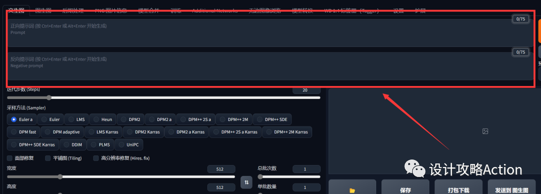 点击天生后,输出的图片都会出如今图示下方,可选择保存位置、保存、打包下载,大概直接发送到图生图、重绘以及后期处置处罚。