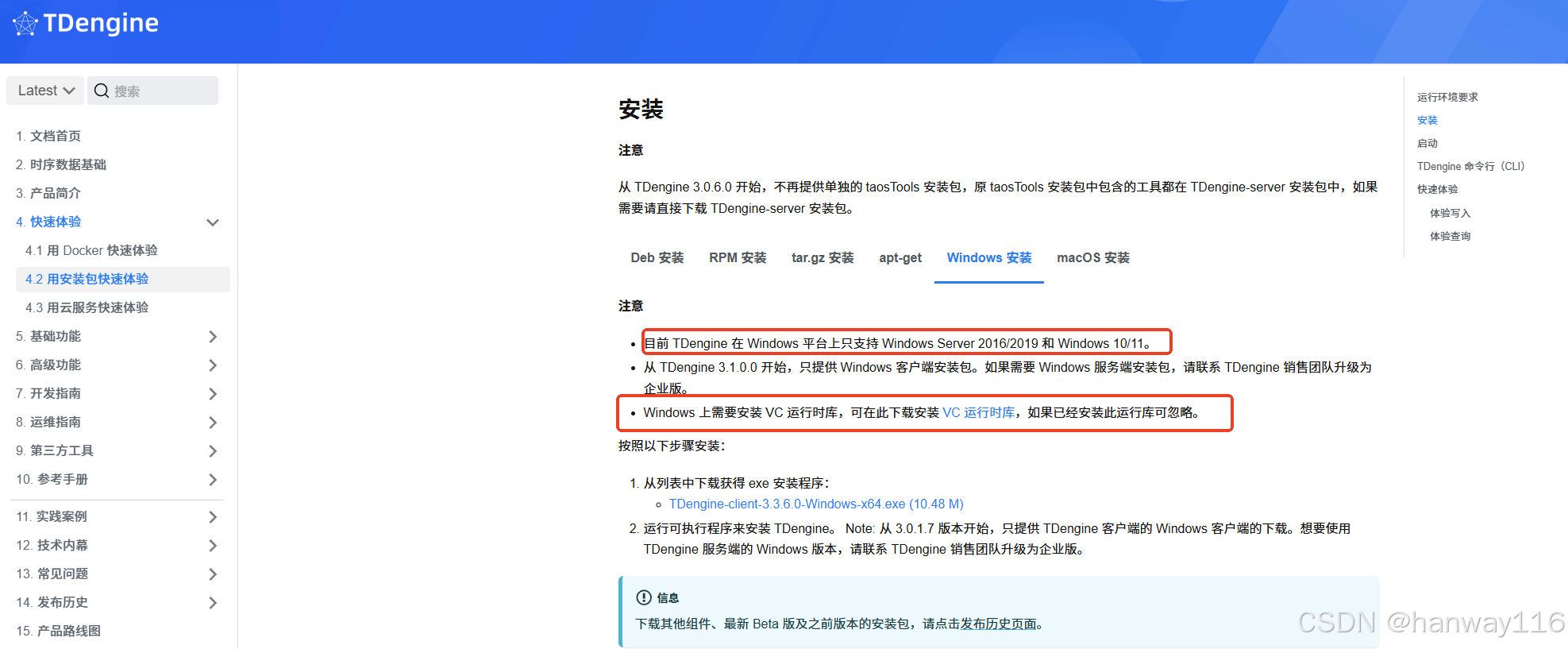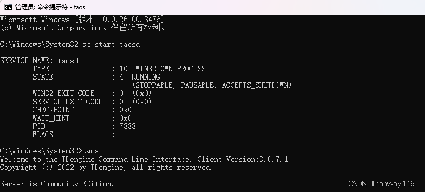根据官网文档中“快速体验”---->"用安装包快速体验" 操作没有成功,因 从 TDengine 3.1.0.0 开始,只提供 Windows 客户端安装包。如果需要 Windows 服务端安装包,请联系 TDengine 销售团队升级为企业版,本文以 TDengine-server-3.0.7.1-Windows-x64 版本为例
