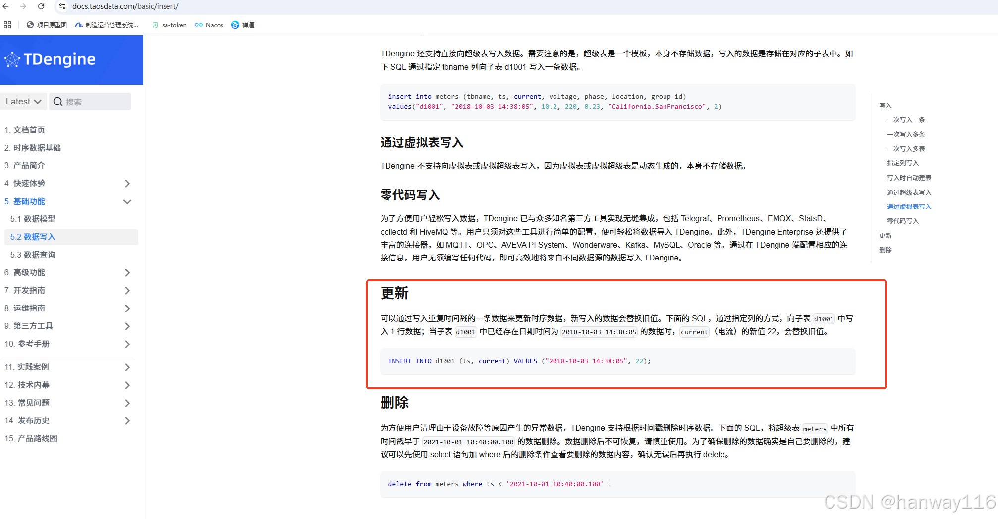 其他使用请参考官网:TDengine 数据写入、更新与删除 | TDengine 文档 | 涛思数据