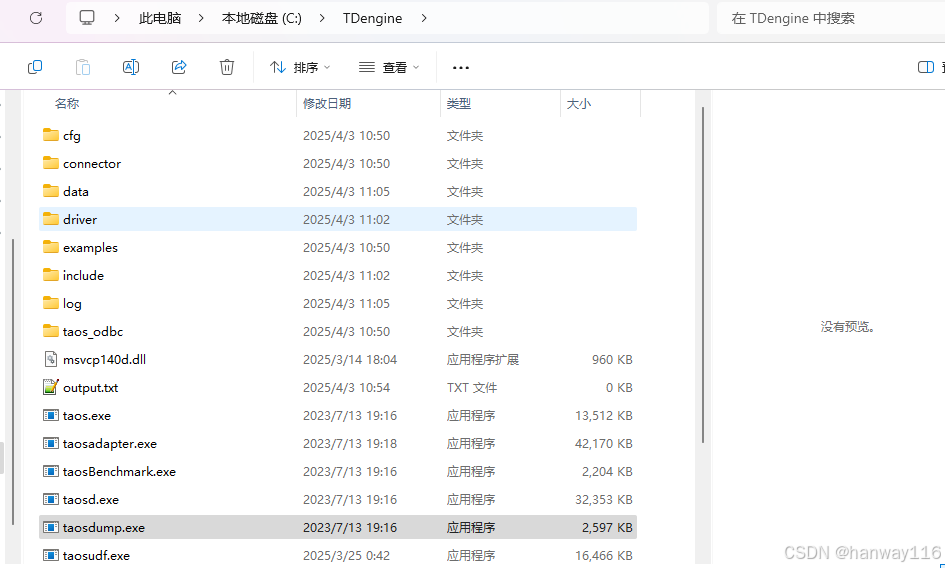 安装完成后安装目录为默认的 C:\TDengine