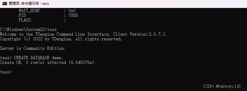 步骤二:启动TDengine数据库服务,通过taos