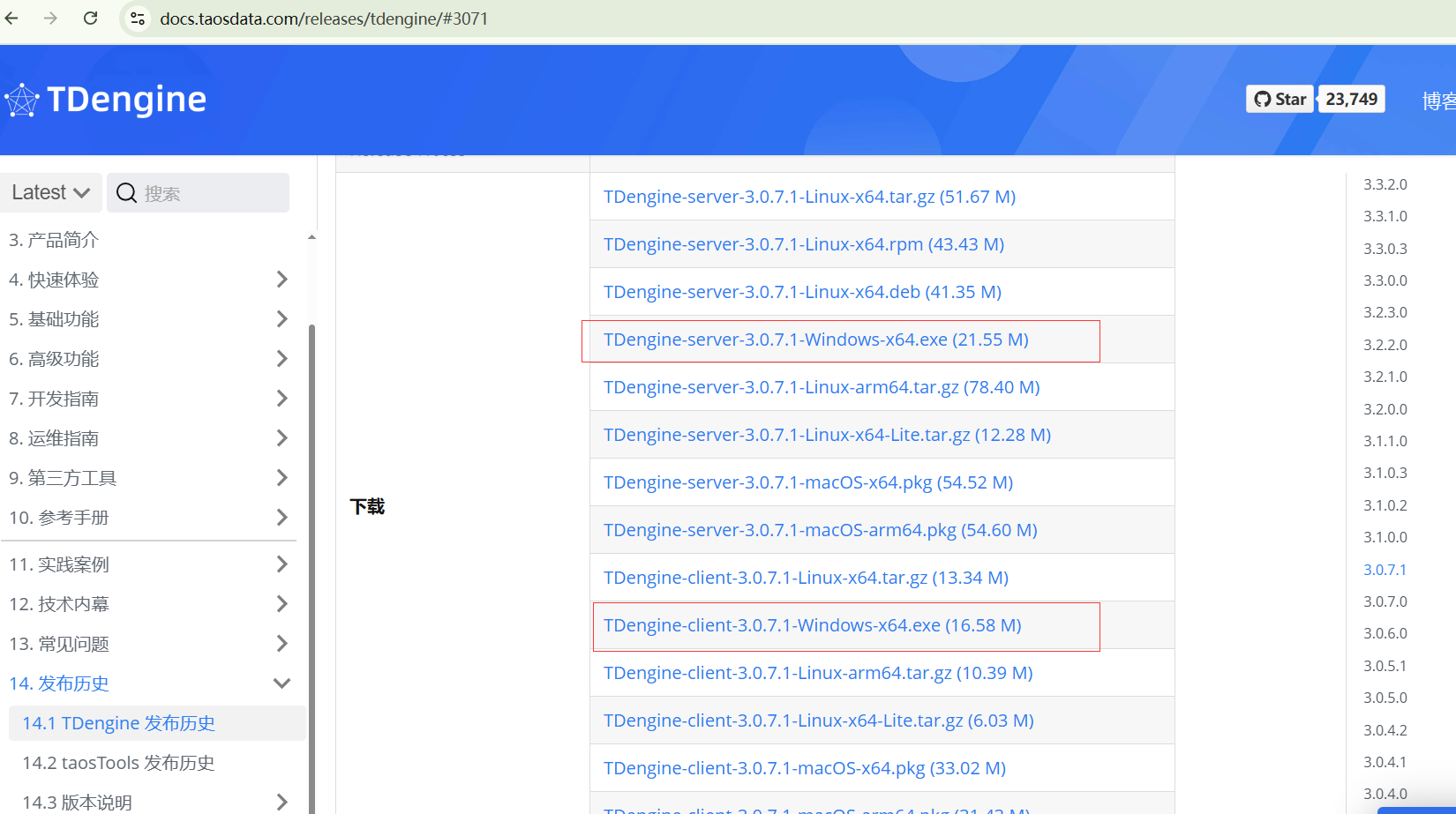 然后在官网找到发布历史,选择3.0.7.1的版本,点击下载需要提供邮箱信息,平台会把下载链接发送到邮箱