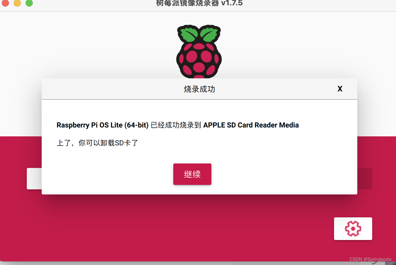 点击烧录开始烧录,进行系统的烧录(macos可能会提示输入密码),静静等待烧录完成。