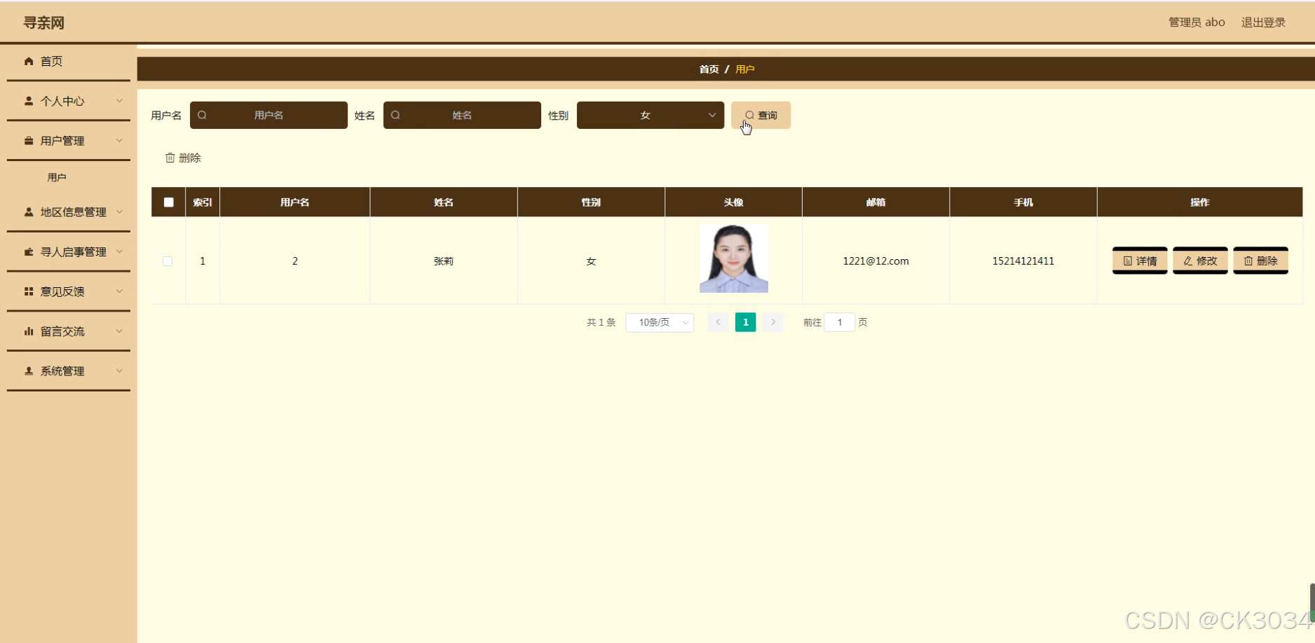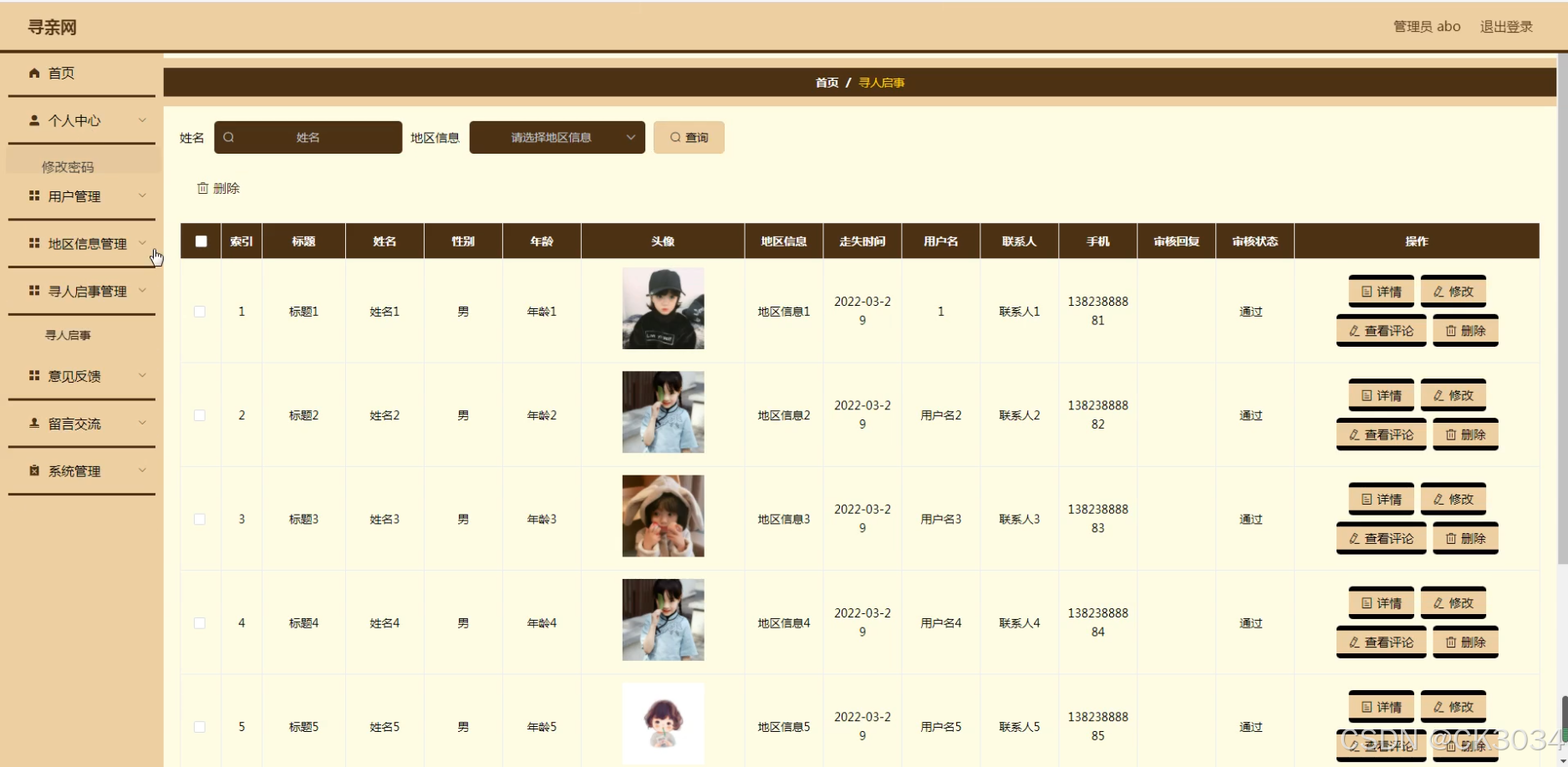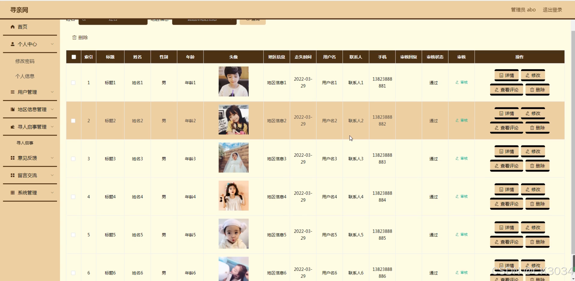 实际生活中,老年痴呆、儿童走失、自然灾害等不可预见因素导致的失联事件频发,给社会与家庭带来了深重的痛楚与不安。寻亲网能够有效冲破地区限定,通过互联网的广泛毗连性,让寻知己息敏捷传播至每一个角落,极大地提高寻亲成功率。