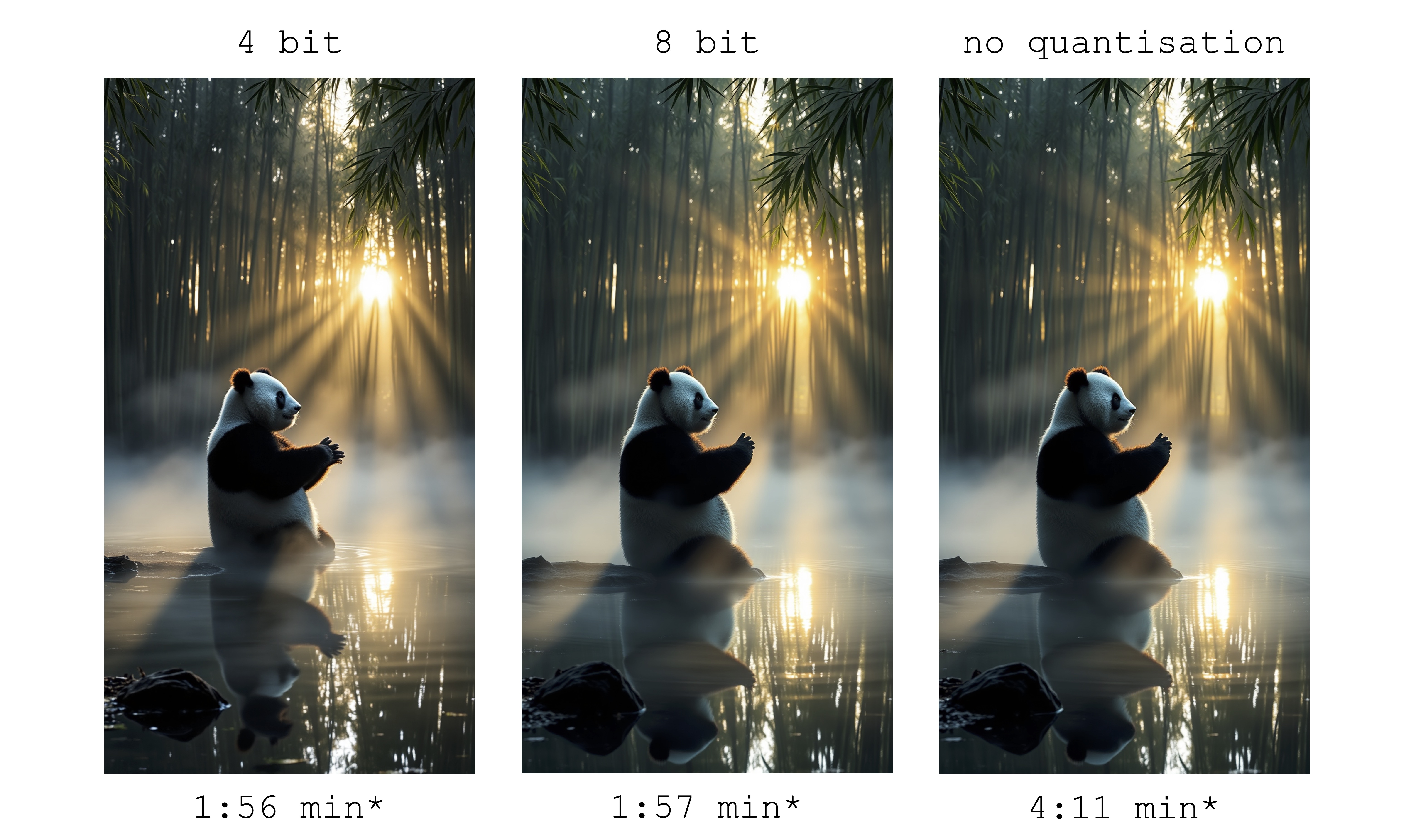 MFLUX支持4位和8位量化模式,可以显著提升生成速度并降低内存占用。以下是利用8位量化模式生成图像的示例: