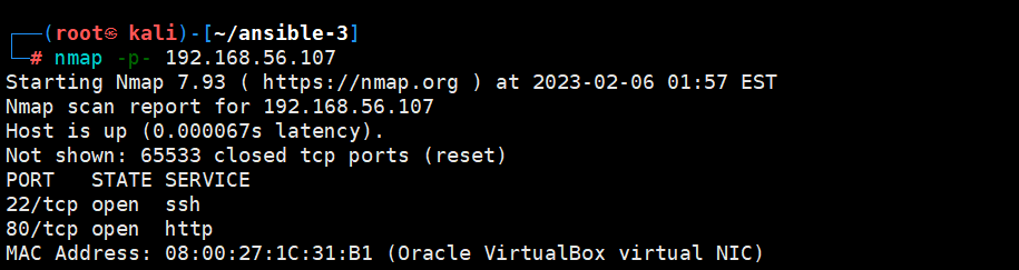 2)全端口扫描- # nmap -p- 192.168.56.107
