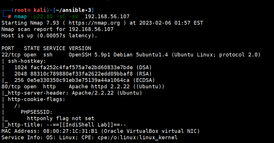 3)服务版本扫描- # nmap -p22,80 -sC -sV 192.168.56.107