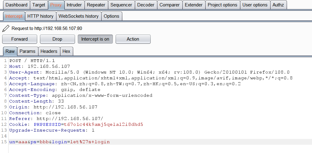 23)通过burp进行数据包截取,并且修改数据提交方式为post