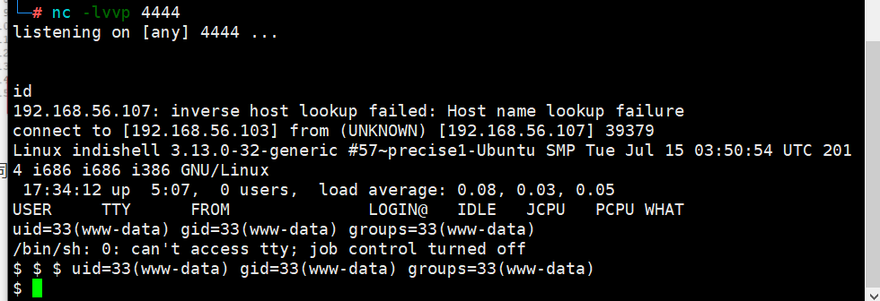 16)将突破边界的shell进行升级- $ python -c "import pty;pty.spawn('/bin/bash')"