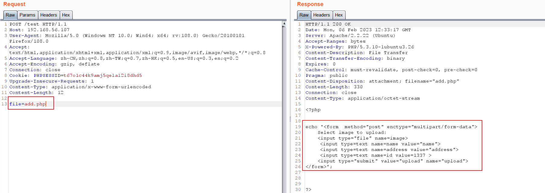 在请求中带了load=add参数,此时可参数是否是通过load参数加载了add.php页面,如果证明该结论正确,说明在此处存在一个本地的文件包含(不一定存在漏洞)