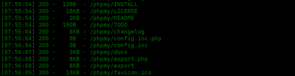 29)对phpmy目录进行目录爬取:- # dirsearch -u http://192.168.56.107/phpmy