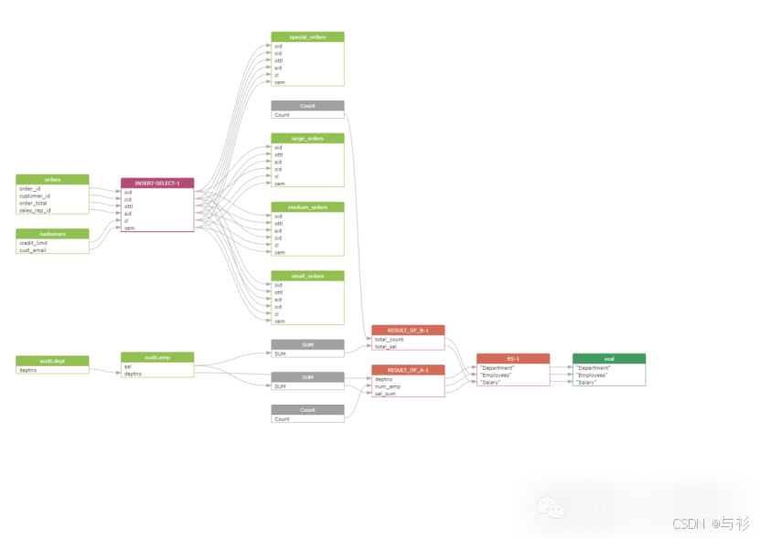 数据血缘分析是通过Java焦点库GSP实现的。GSP通太过析数据摄取阶段得到的元数据和SQL得到数据血缘分析效果。支持json、xml和csv三种输出格式。