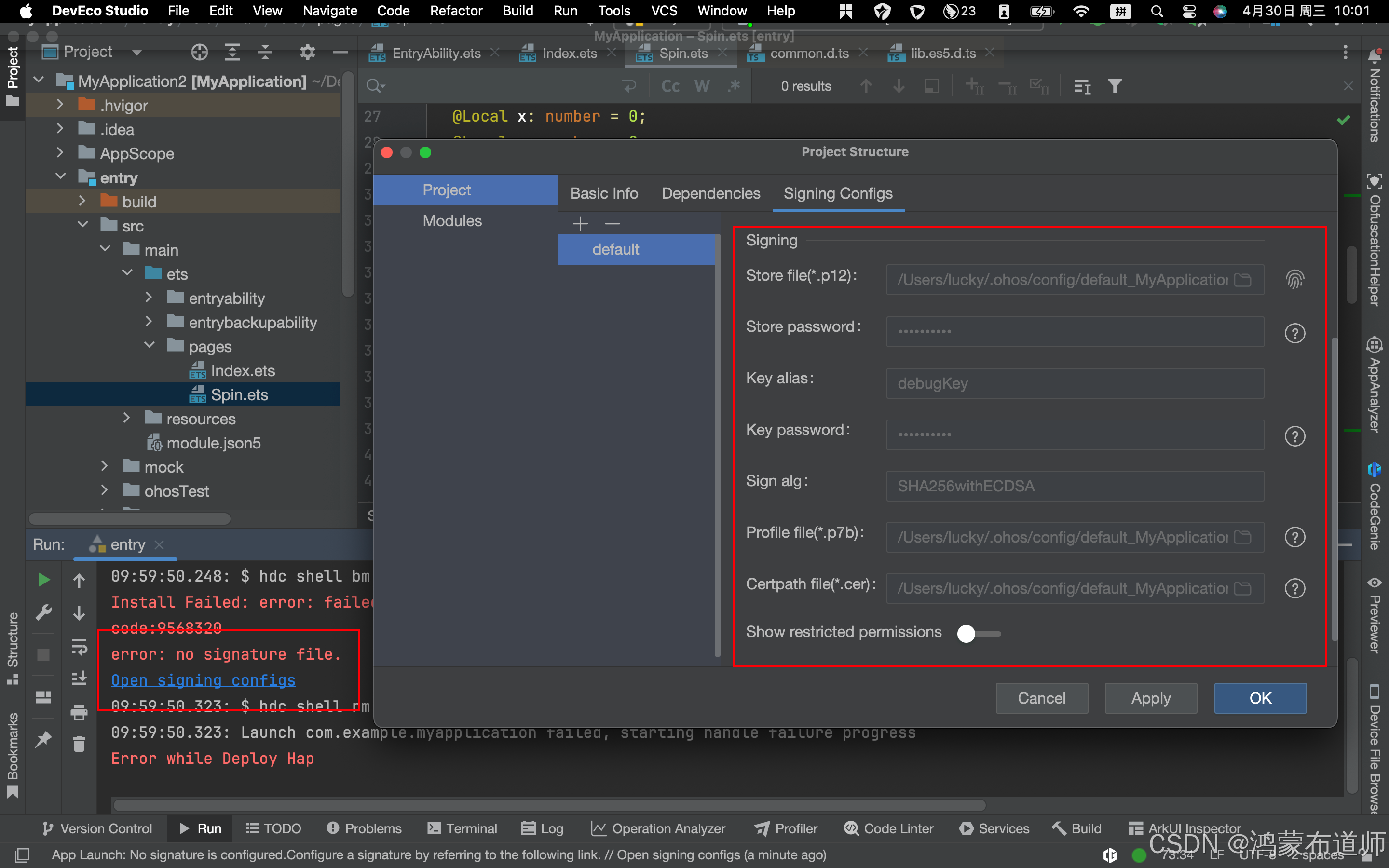 复制代码 4.运行项目,登录华为账号,需举行署名