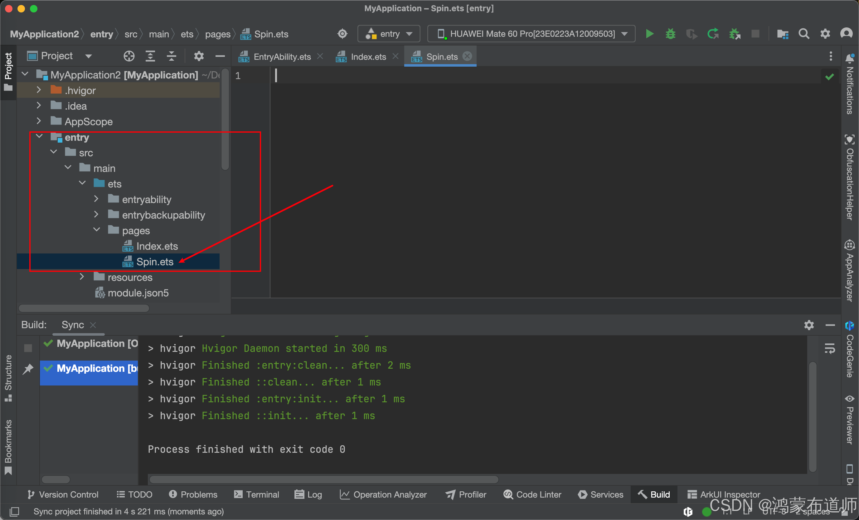 2.Page文件夹下面新建Spin.ets文件,代码如下: