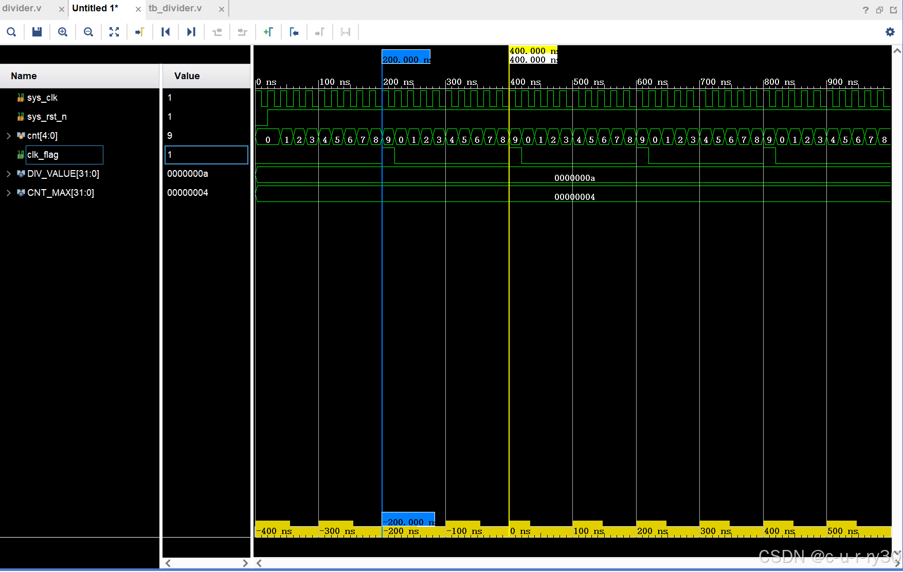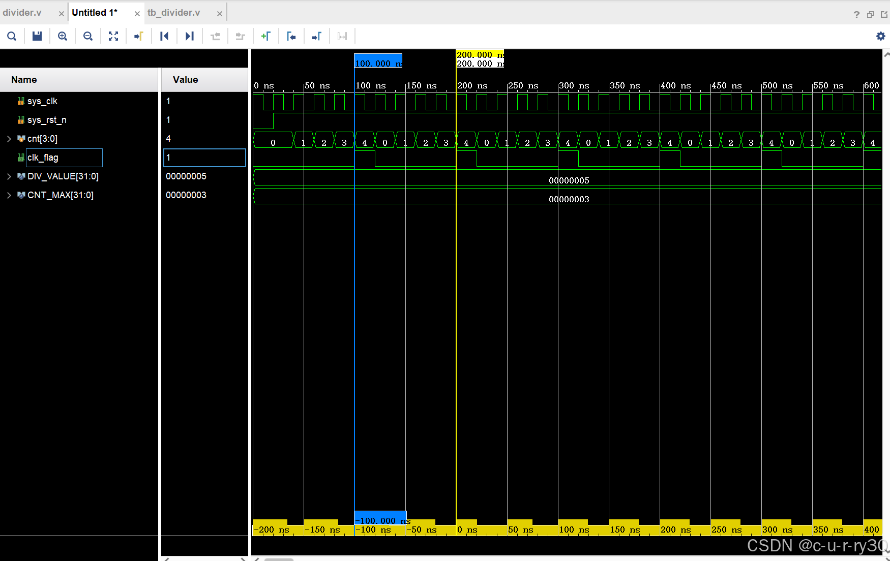 体系时钟周期20ns,clk_flag周期200ns。