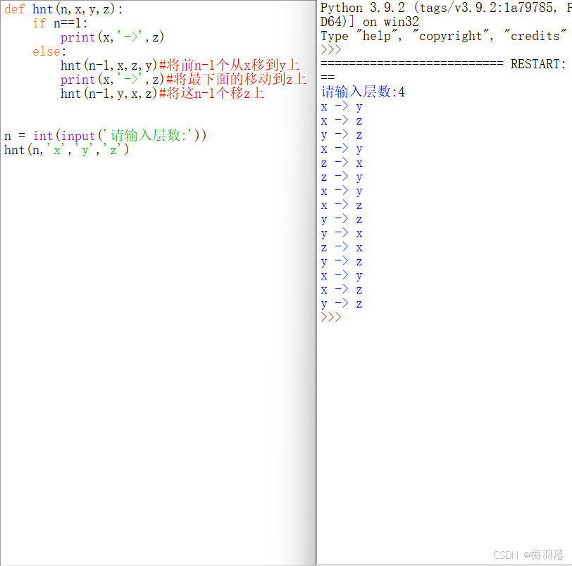 - hnt(n-1,y,x,z)#将这n-1个移z上