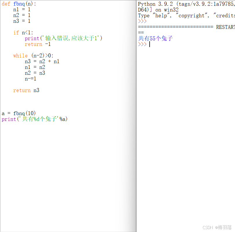 - print('共有%d个兔子'%a)