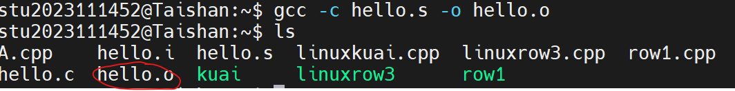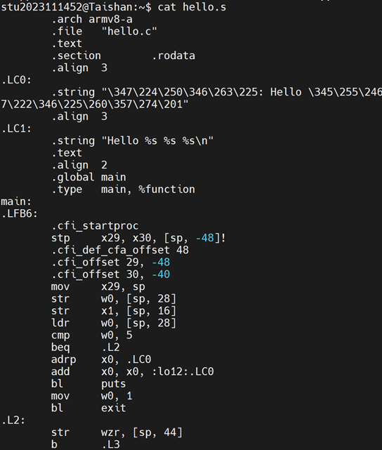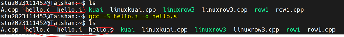 命令:gcc -S hello.i -o hello.s