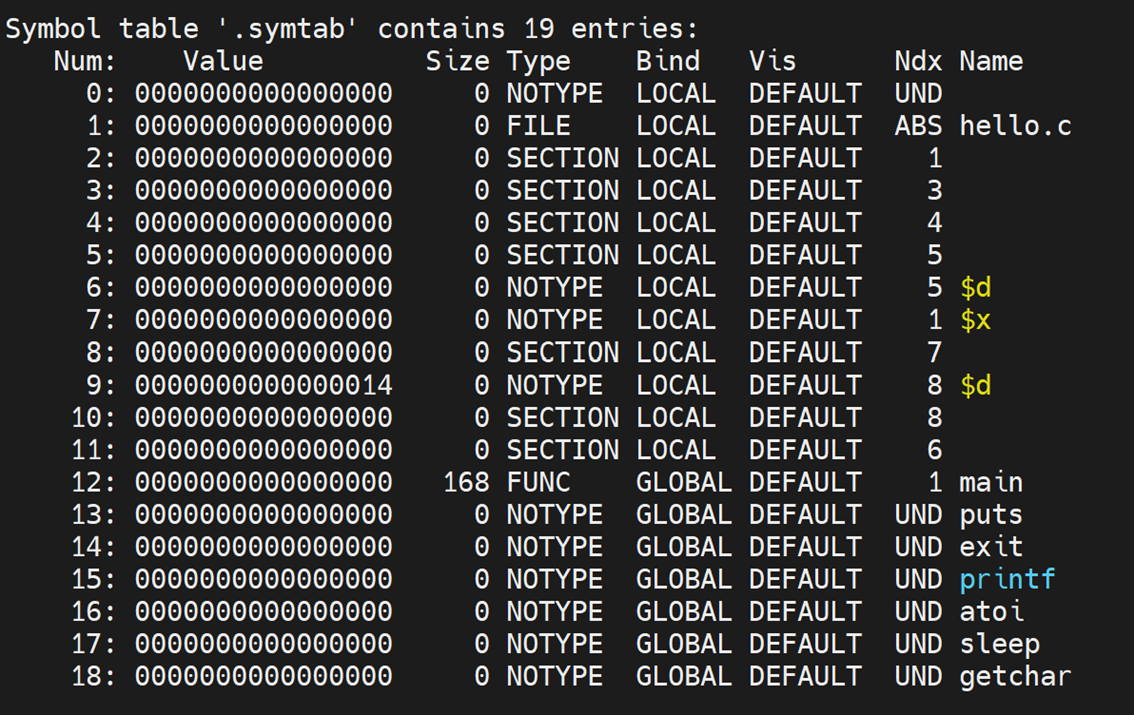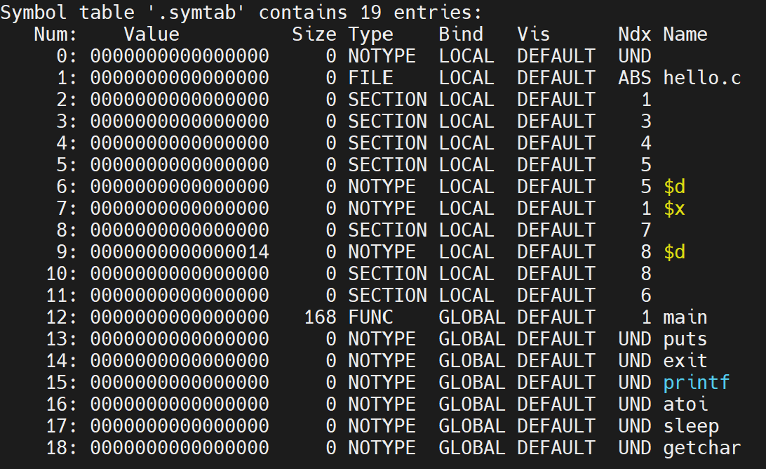 | hello.elf | 用readelf读取hello.o得到的ELF格式信息 |