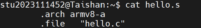 | hello.s | 编译后得到的汇编语言文件 |