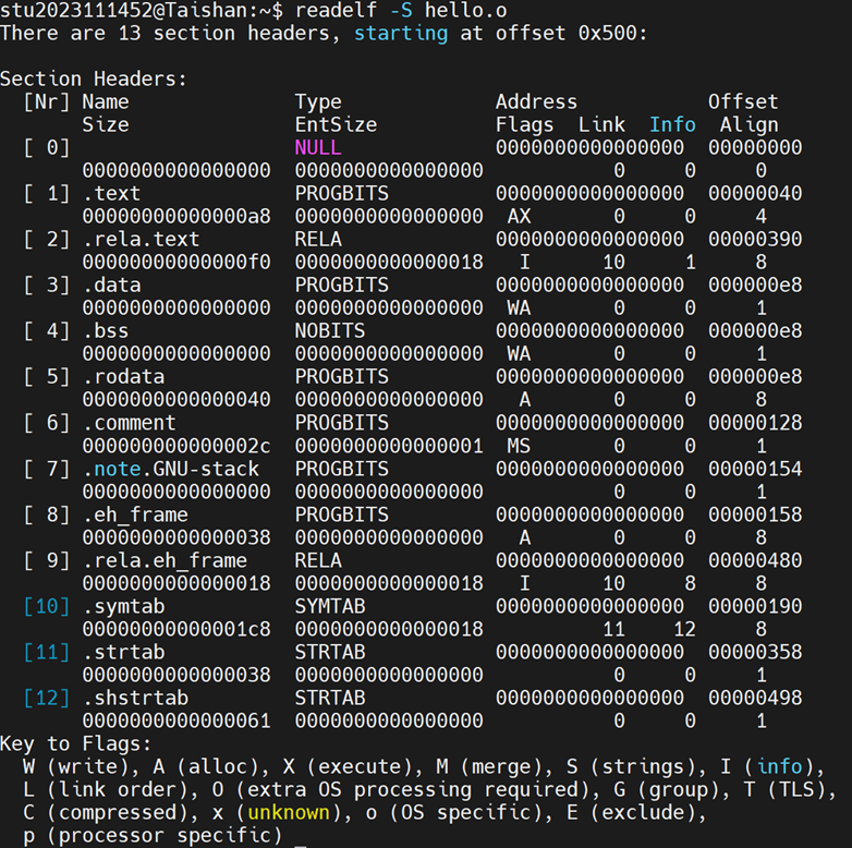 | hello.o | 汇编后得到的可重定位目标文件 |