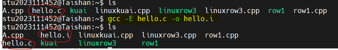 命令:gcc -E hello.c -o hello.i