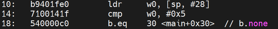 想举行这个循环首先必要有一个i,以是先从栈中调出i。ldr w0, [sp, 44]加载循环变量 i。