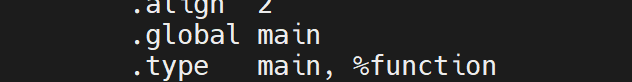 此中.text(接下来出现的所有都是这个意思)表现代码节,.string用于声明一个字符串,.type用于声明一个符号的类型,.globl用于声明全局变量,而.align用于声明对指令或者数据的存放地址举行对齐的方式,这里使用8 字节(2^3)对齐数据,确保访问效率。