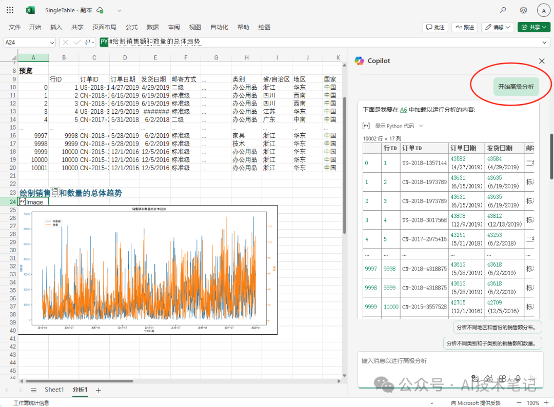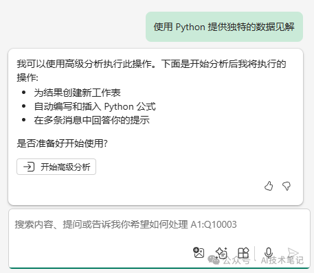 点击“开始高级分析”,Copilot将会主动天生Python