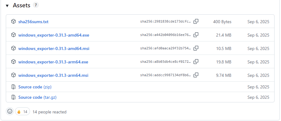 下载地点:https://github.com/prometheus-community/windows_exporter/releases