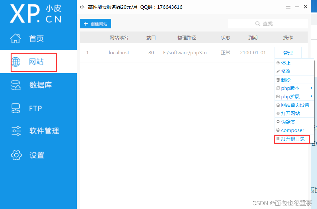 3.将解压出的文件移动到PhPStudy站点提示的目次下