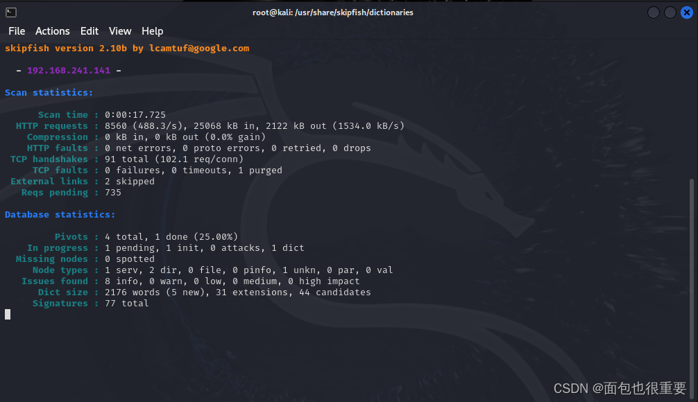 1)查察skipfish当地自带字典