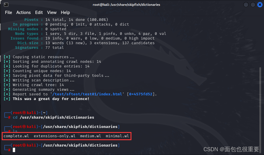 字典所在:/usr/share/skipfish/dictionaries