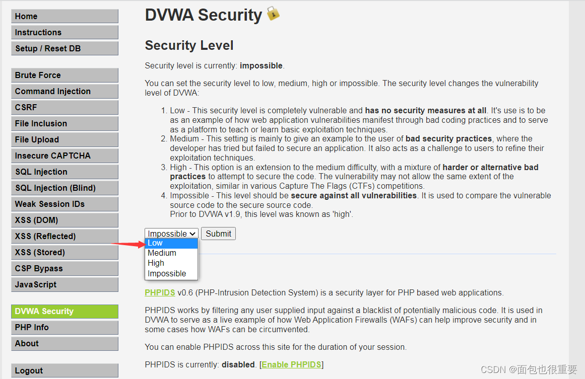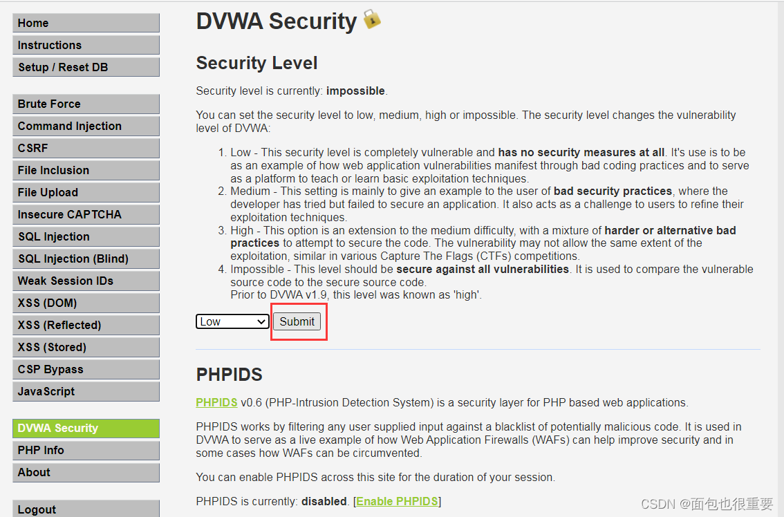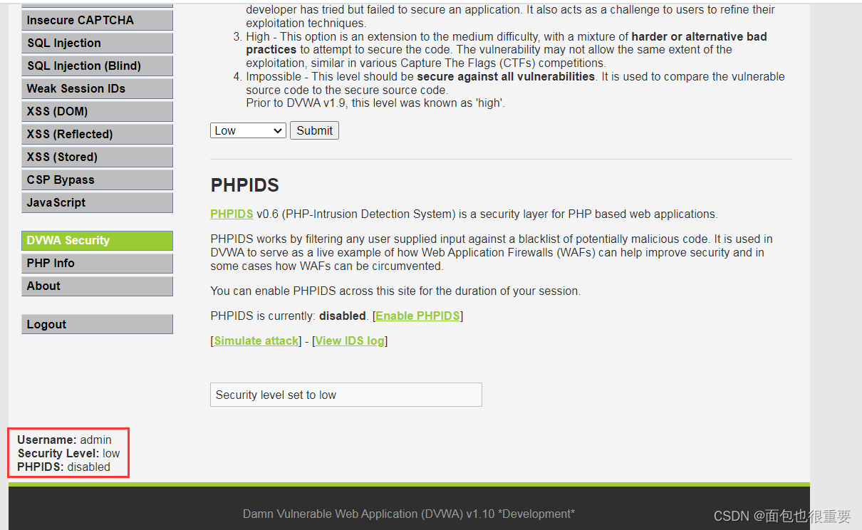 10.修改DVWA安全级别