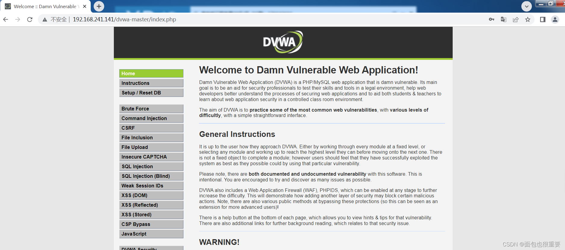 访问http://192.168.241.141/dvwa-master/