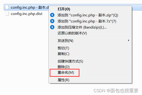 将复制出来的文件的后缀(.dist)删除,使厥后缀酿成.php。(可明白为重定名为:config.inc.php)