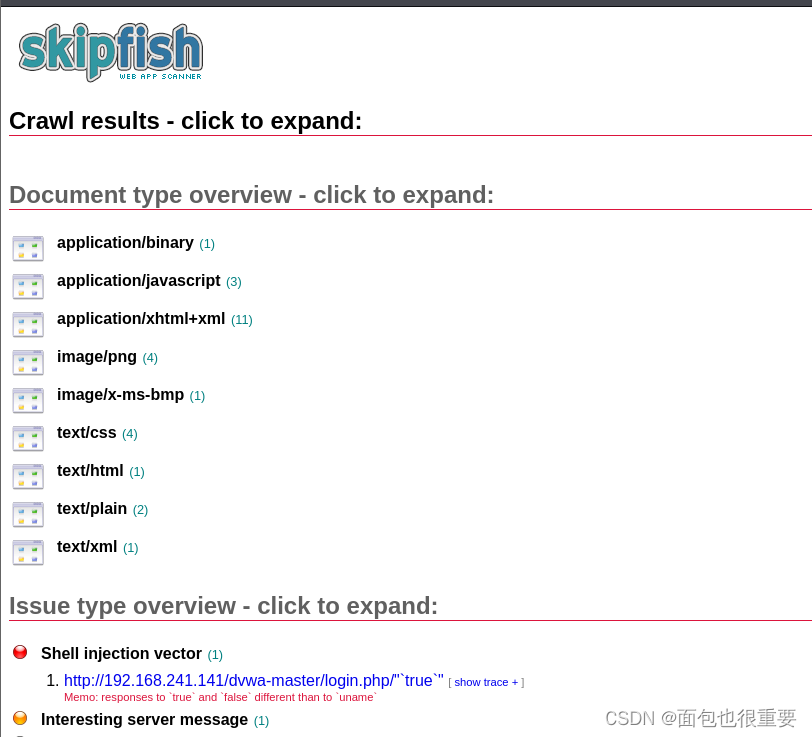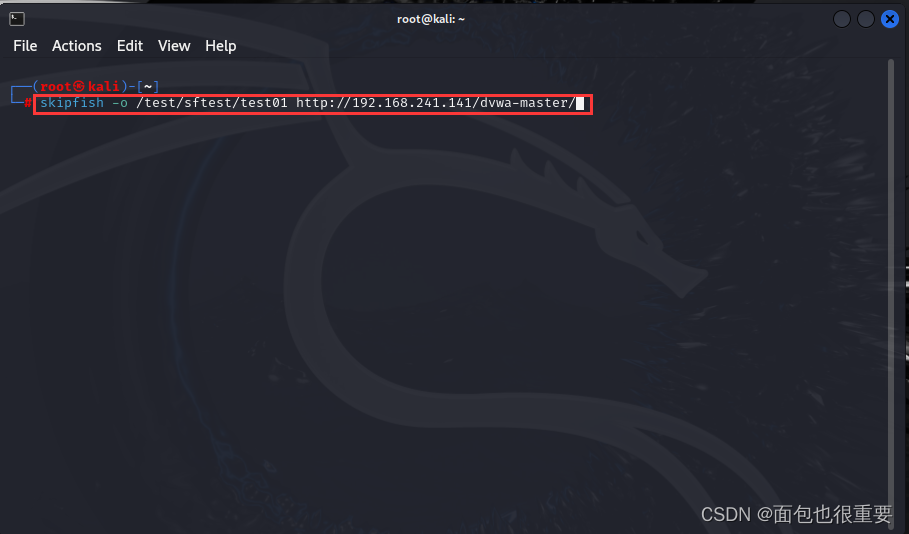 skipfish -o /test/sftest/test01 http://192.168.241.141/dvwa-master/