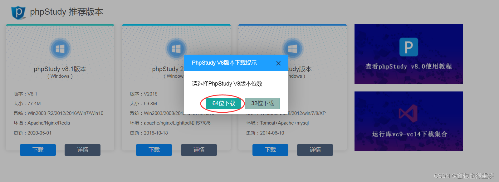 根据自己的电脑设置选择下载64位或32位