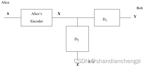 在物理层安全的研究中,一个关键的概念是1975年Wyner[3]的有线窃听信道模子。在这个模子中,发送方(Alice)和吸收方(Bob)之间的通讯可以被窃听者(Eve)通过一个差别的信道所监听,如图2所示。Wyner展示了在某些条件下,可以操持出纵然在Eve拥有无穷盘算本领的情况下,也能确保信息完全保密的编码方案。
