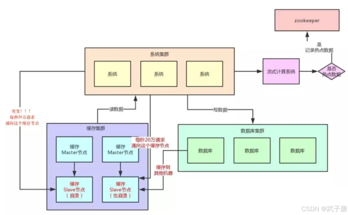 - 突发流量导致缓存服务器过载宕机
