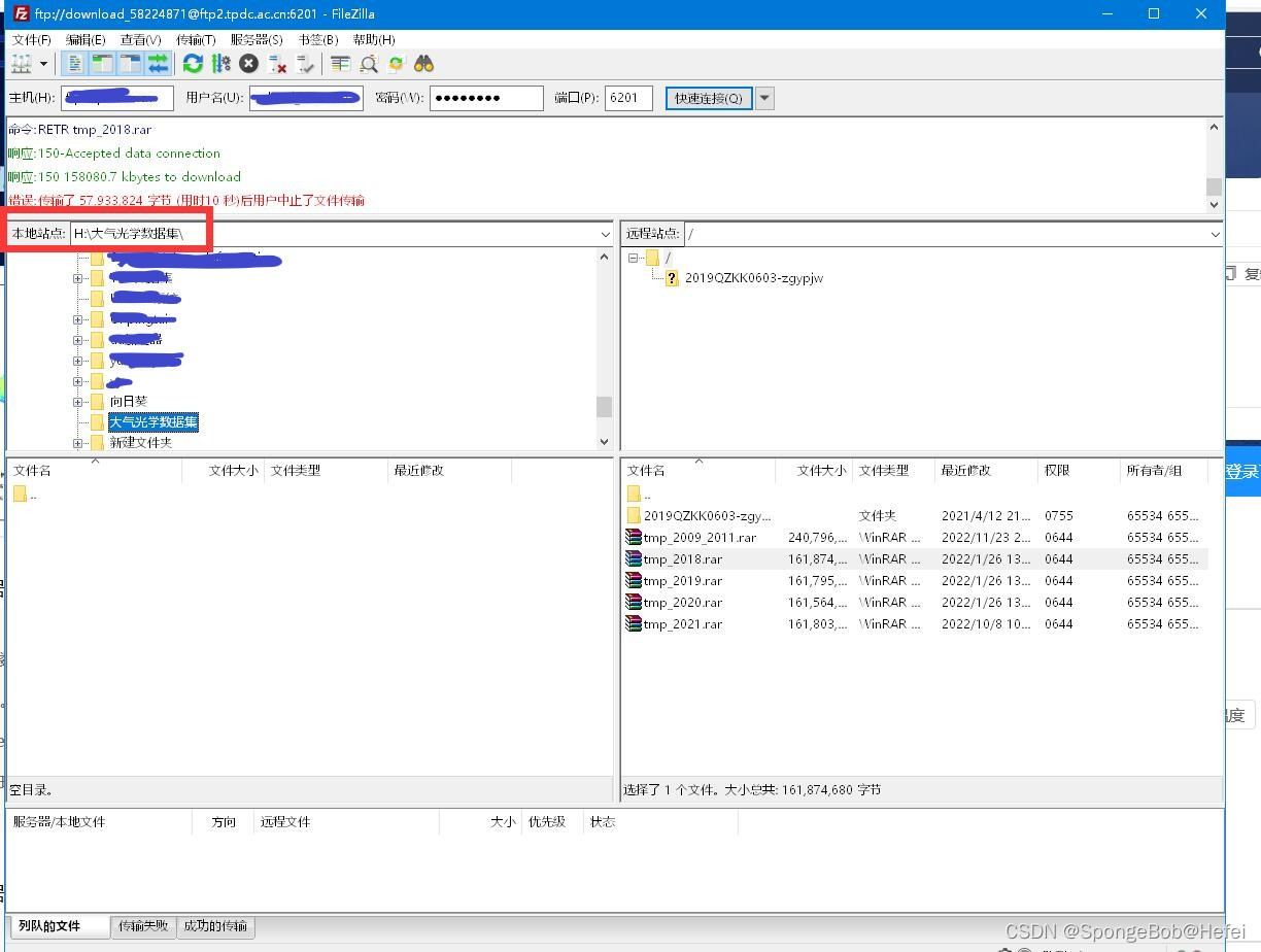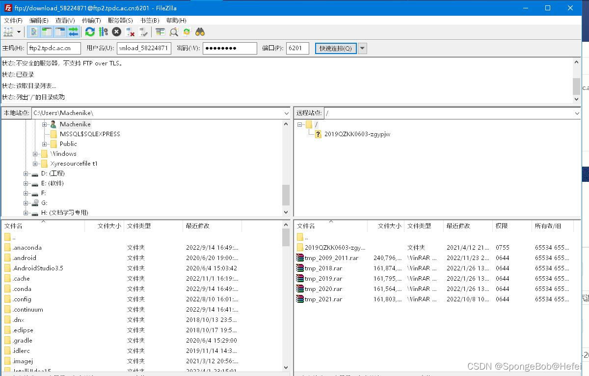 然后点击快速毗连,进入到对应的账号中。左边的本地站点是我们下载的位置,右边的远程站点的下面的文件名是我们所须要下载的数据,我们须要调整左边的位置(即把本地站点选择为我们想要下载放到的文件夹下面),然后右击右下的文件名,点击下载即可。